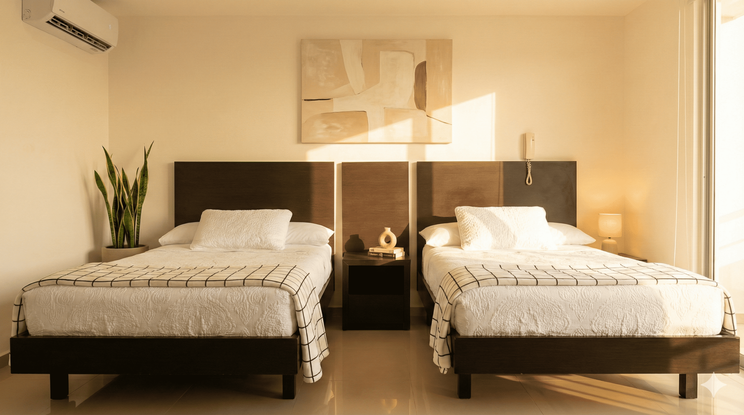 Diseñada para quienes valoran mayor amplitud y confort. La Habitación Deluxe ofrece un ambiente más silencioso y detalles pensados para descansar con calma después de un día de actividades o reuniones.